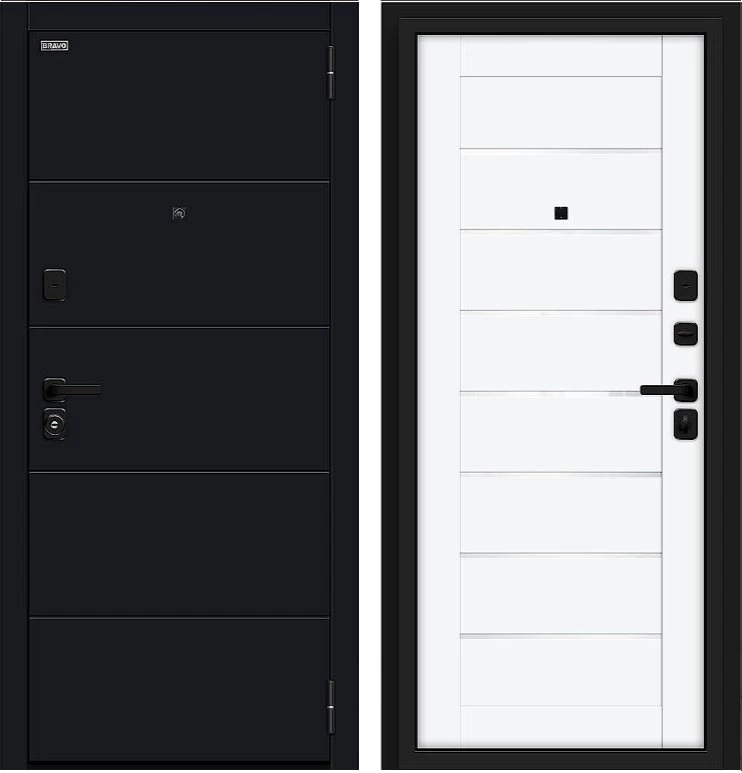 Надежная входная Дверь Браво Прайм/SBlack-Black Shell/White Silk премиум класса по цене 40 299 руб. Большая толщина стали защитит от проникновения в ваш дом, квартиру или коттедж. Используется очень качественная фурнитура: замки, цилиндры, ручки, защелки. Покрытие и отделка двери изготовлено под внимательным контролем производителя. Дверь имеет долгий срок службы и гарантию.