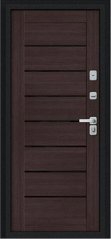Дизайнерская входная Дверь Браво Thermo Техно Д2/BChrome Букле черное/Wenge Melinga класса Люкс с несколькими листами стали, звукоизоляцией и теплоизоляцией. Утепленный короб и полотно защитят от сквозняков и шумов. Модель не только надежная, комфортная, защищенная и высочайшего качества, но и очень красивая! Будет отлично сочетаться с интерьером дома, квартиры или офиса. Сейчас действует выгодное предложение по цене: 57 749 руб.