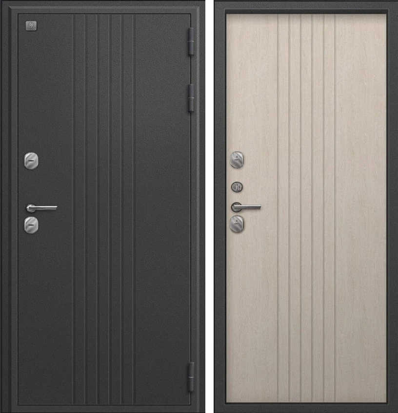 Надежная входная Дверь Термо-90 графит букле - седой дуб премиум класса по цене 38 499 руб. Большая толщина стали защитит от проникновения в ваш дом, квартиру или коттедж. Используется очень качественная фурнитура: замки, цилиндры, ручки, защелки. Покрытие и отделка двери изготовлено под внимательным контролем производителя. Дверь имеет долгий срок службы и гарантию.